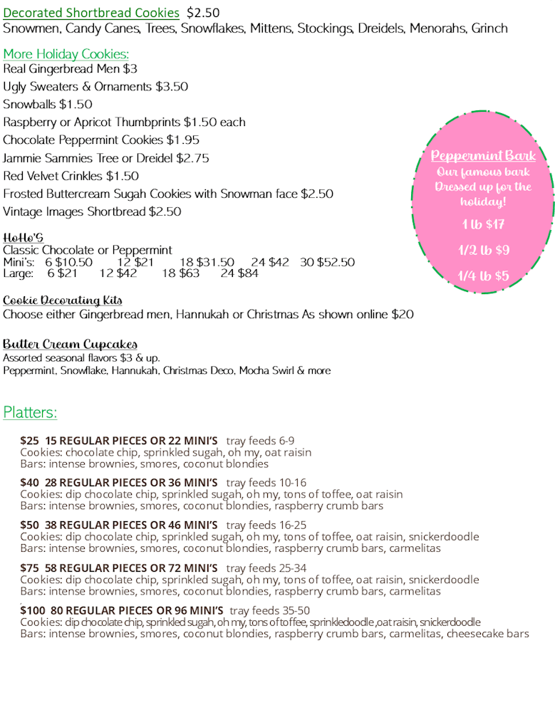 All our cookies and bars are baked fresh daily and made with pure butter and Nielsen Massey vanilla!