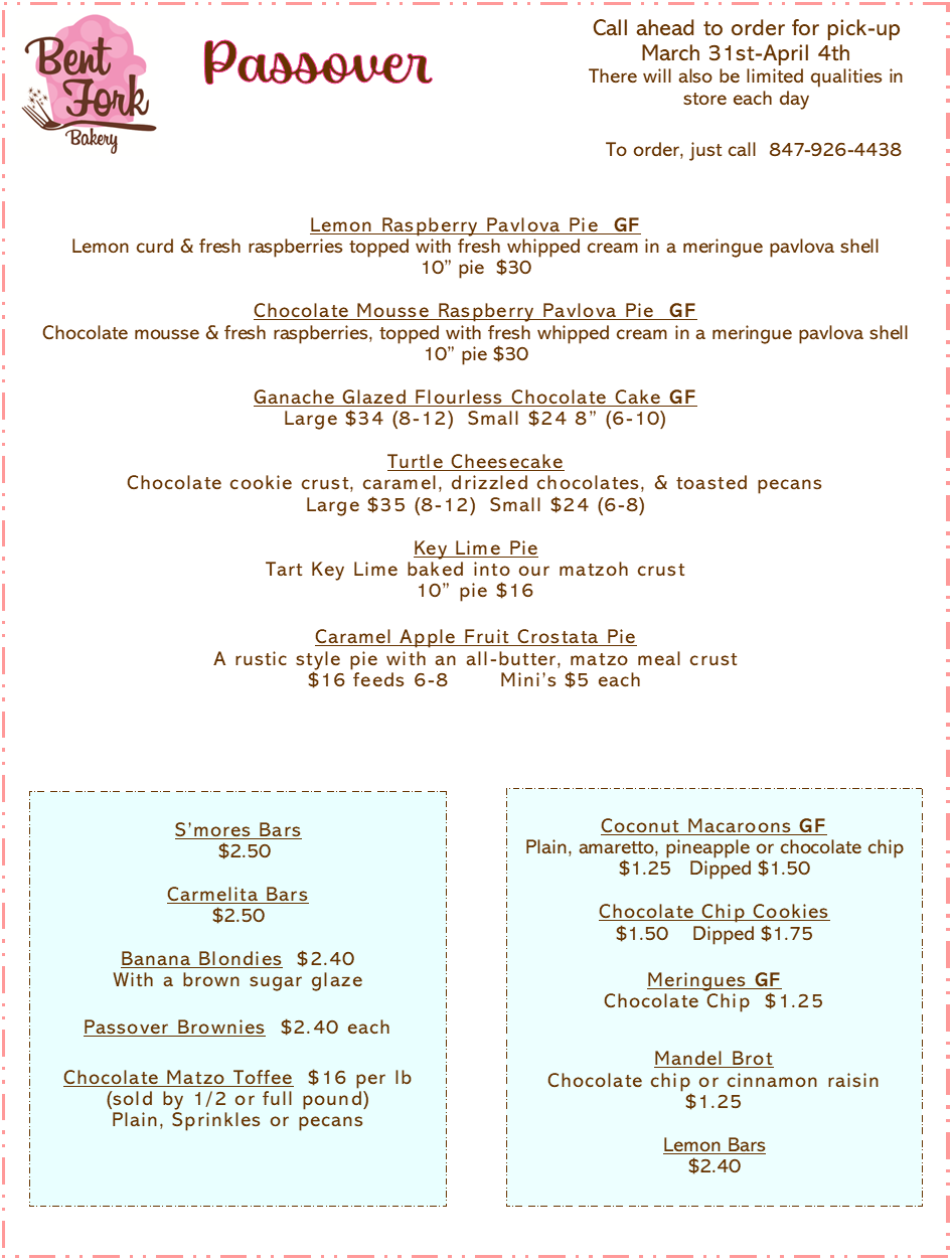 Tastings are all 'to-go' and are $4. each. The taster is a two layer cupcake with chosen fillings and frosting. It is enough for two to split. When choosing your tasting flavors, these are the most popular. All requests must be received via email cookie@thebentfork.com at least 48 hours ahead.